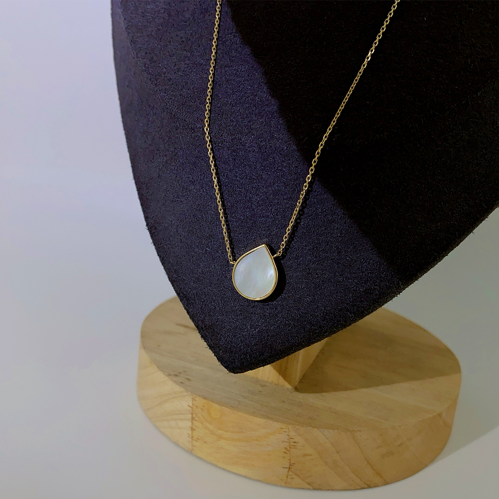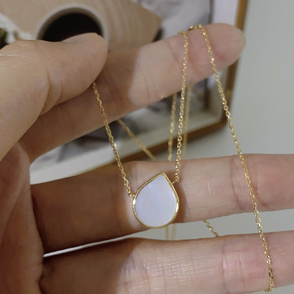 Cadena de Oro de 14K con charm blanco de concha madre