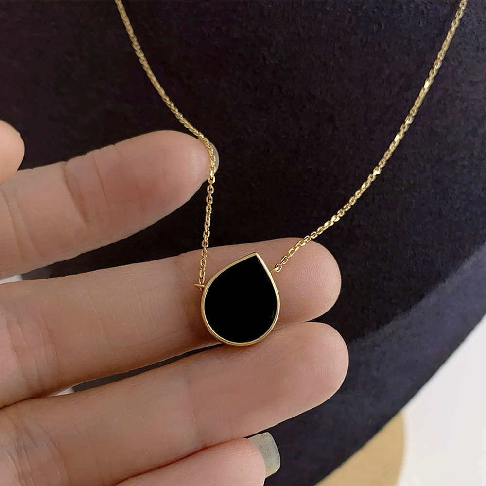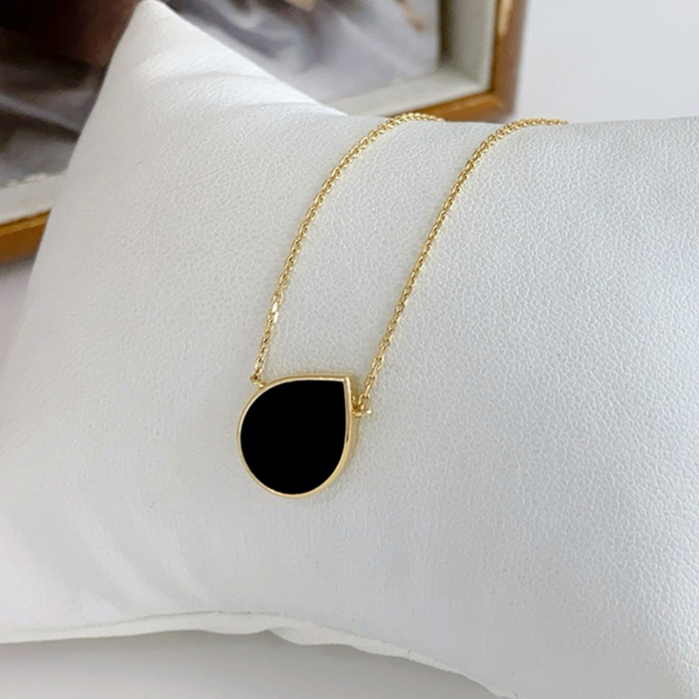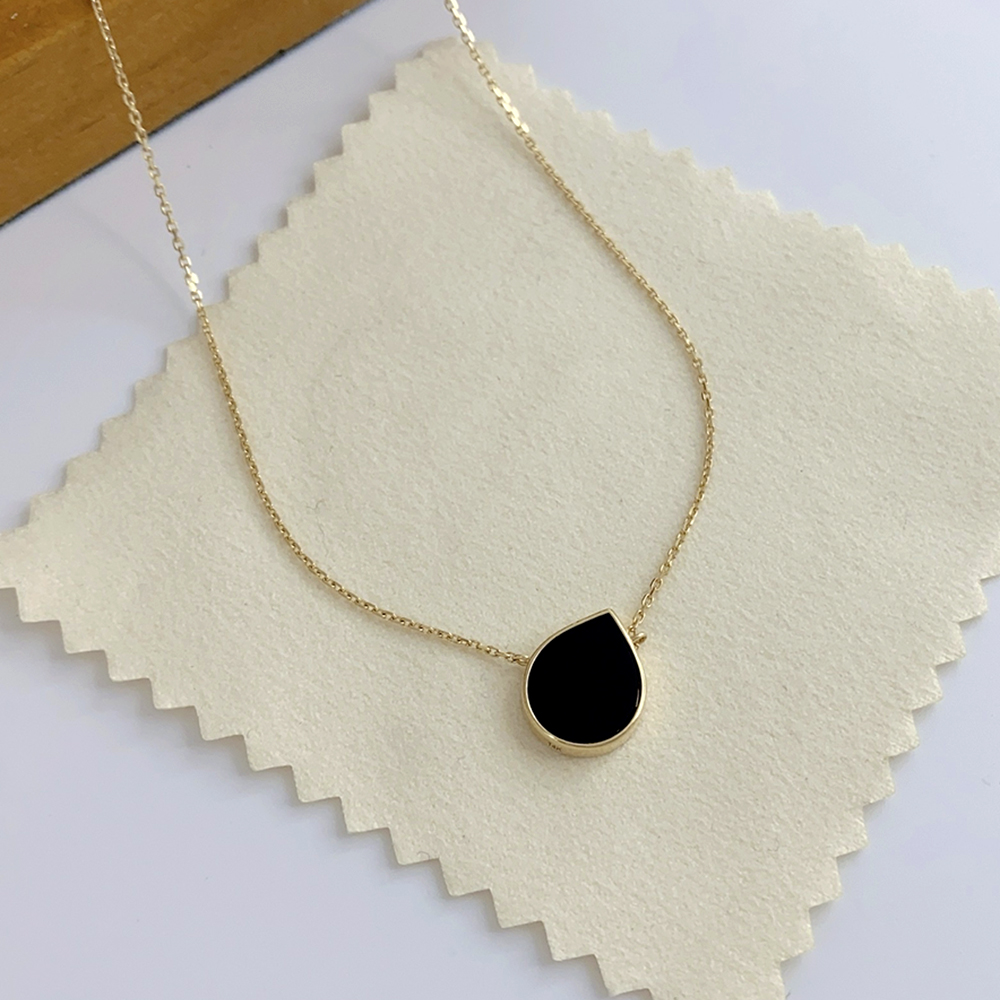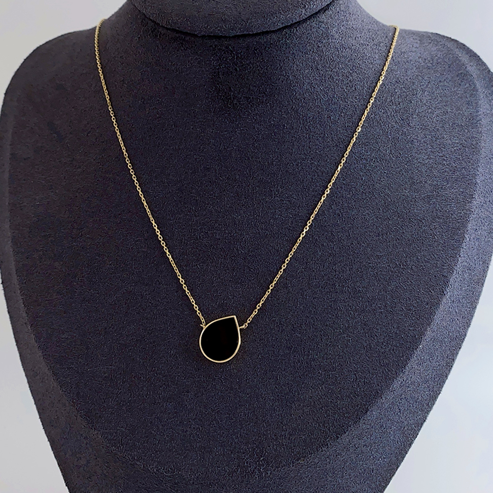 Cadena de Oro de 14K con charm de hoja con Onix negro