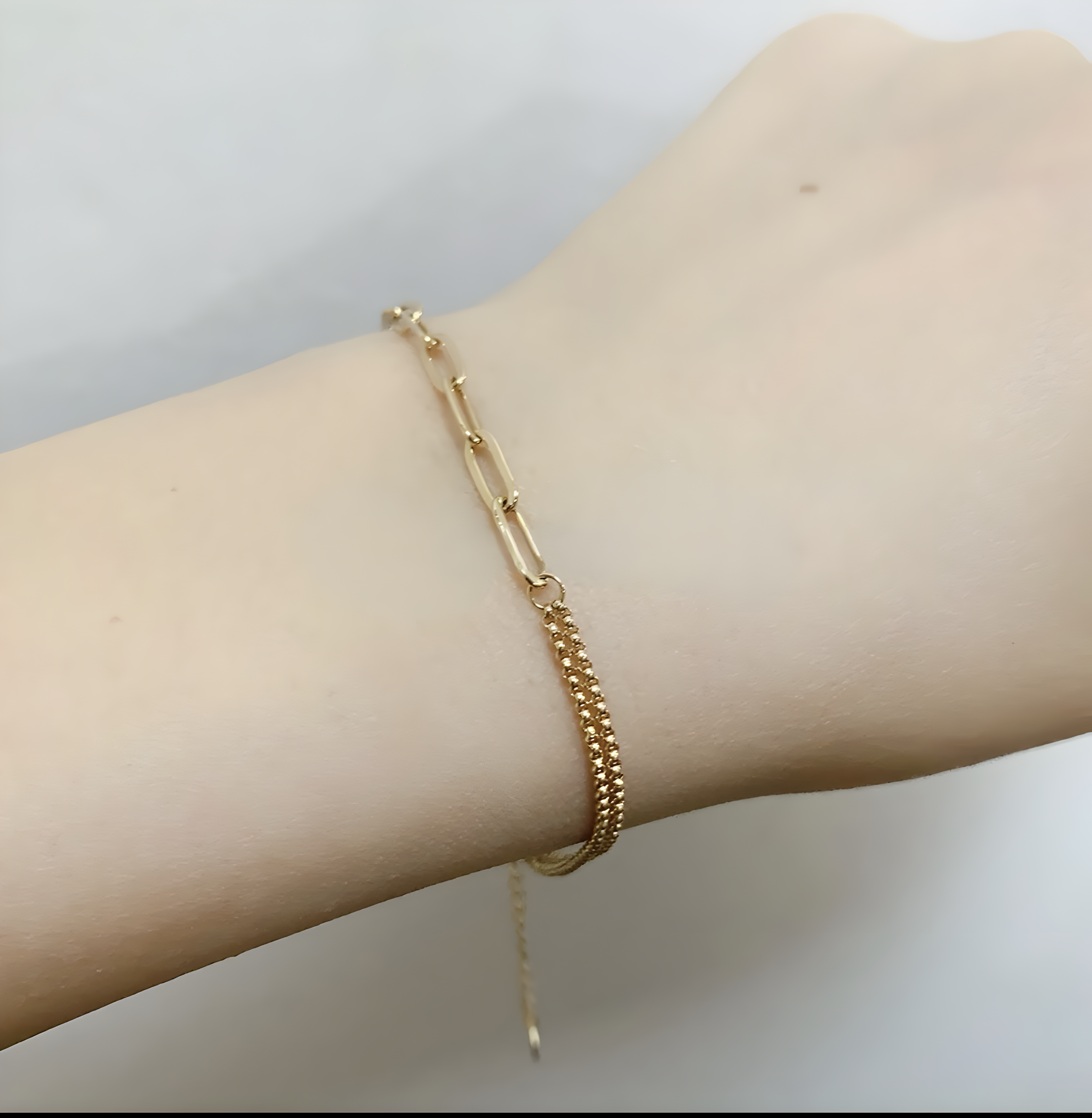 Pulsera de Oro de 14K en diseño Paper Clip y Rolo doble